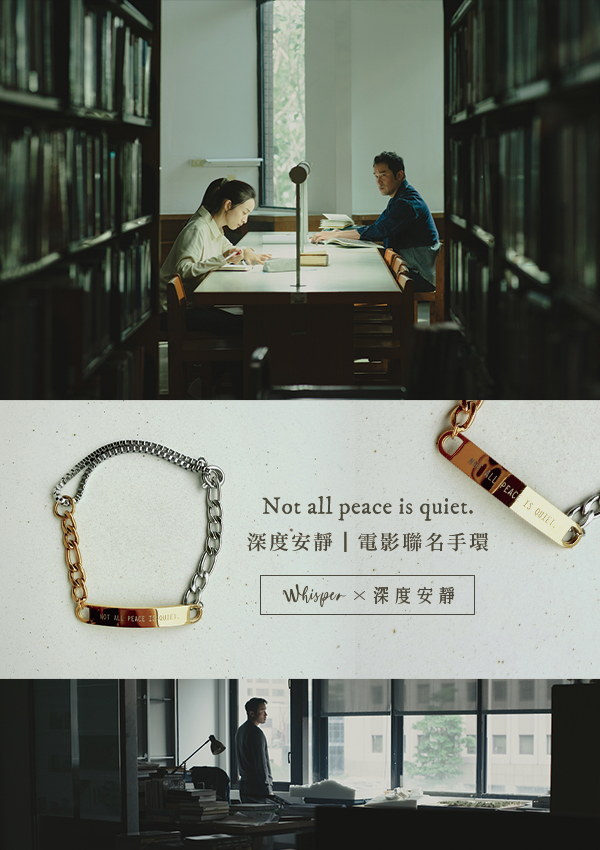 首頁/Whisper x 深度安靜 Whisper x 深度安靜 每個人心裡都有一片極深的水域。那些說不出口的、以為已經沉到底的秘密,其實都在等待… 《深度安靜》故事描述諭明(張孝全 飾)與依庭(林依晨 飾)在大學圖書館的「Deep Quiet Room」相識,兩人相愛並走入婚姻。原以為生活將平穩展開,卻在依庭懷孕後,過往的壓力與家庭陰影逐漸浮現,連帶改變了兩人的關係。行動不便的岳父(金士傑 飾)搬入同住,諭明努力維繫這個家,過著陌生客套的窒息生活。直到他讀到依庭正在編輯的書,才驚覺 ——她所承受的,遠超過自己所理解的一切。 有些人看起來很安靜,其實只是習慣把話吞回去。Not all peace is quiet.安靜,不一定代表沒事。這條聯名手環,獻給那些努力維持平靜的人有些話,不一定要說出口,但至少,可以被自己看見。 把這句話,留在身邊 我們想陪你做的 —— 是在你開始責怪自己的時候,幫你把那個一直審判自己的系統,關掉。