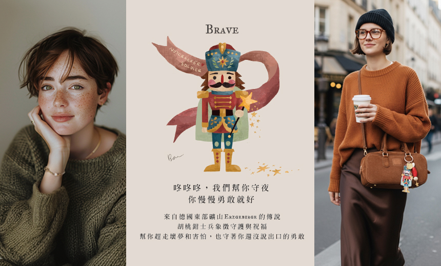Brave|德國勇敢胡桃鉗士兵水晶手環 + Brave|德國勇敢胡桃鉗士兵刺繡吊飾 / 小意思卡片1張 / 禮盒及信封、品牌布袋各1 ( 隨機出貨 )